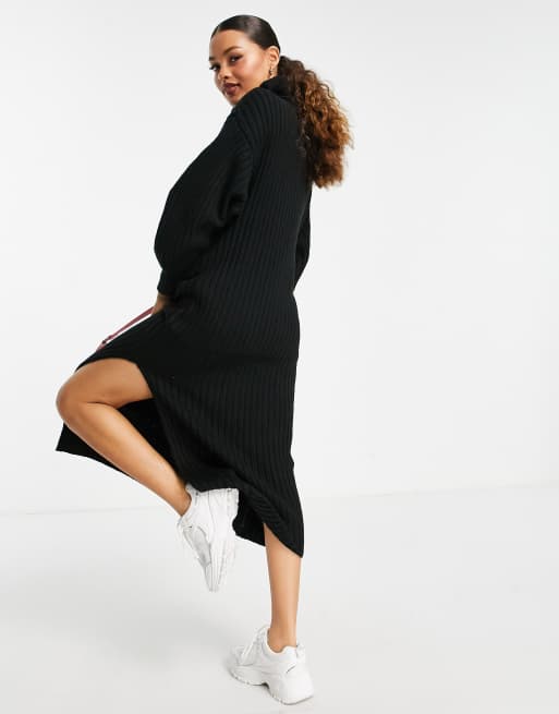 Asos black ribbed discount dress