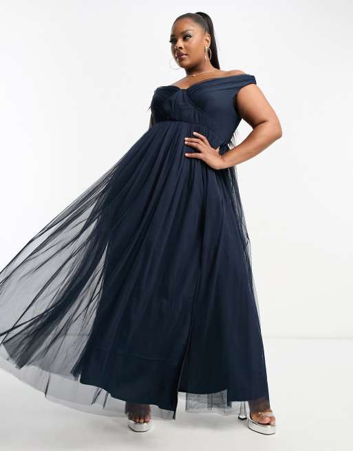 Navy bardot maxi discount dress