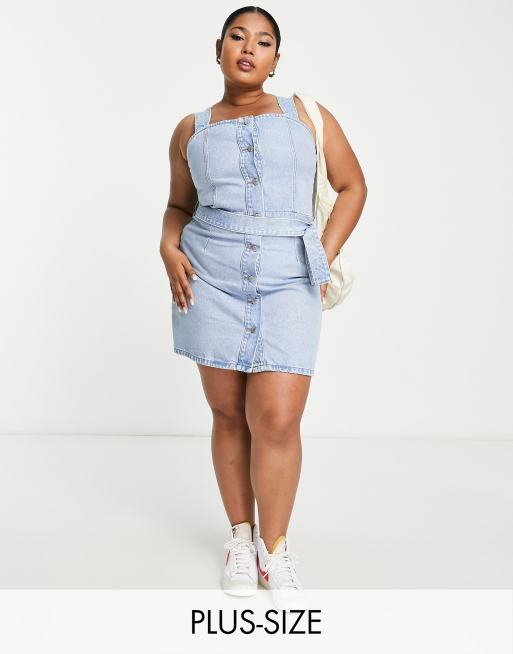 Ladies denim pinafore discount dress plus size