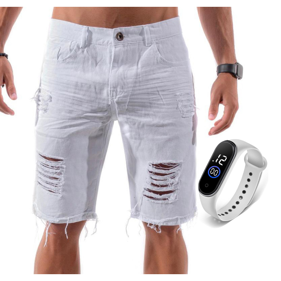 Bermuda branca rasgada discount masculina